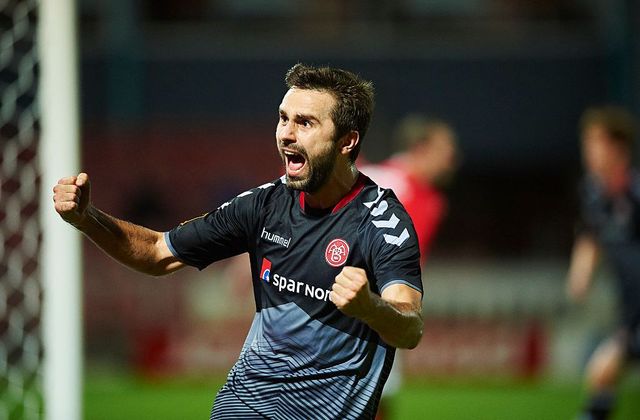 Jakob Blåbjerg fejrer ét af sine seks mål i AaB-trøjen. Foto: Getty Images