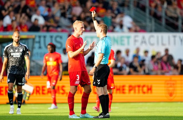FCN-forsvarsspilleren stoppede en oplagt målchance med armen. Dommer Lasse Graagaard lod i første omgang spillet køre, men han blev hurtigt kaldt ud til VAR-skærmen.