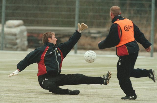 - Jeg kan dog tydeligt huske, hvad der skete, da jeg troede, at jeg skulle på banen. Min målmandstræner sad nede foran mig på bænken og vendte sig om og sagde: Så er det af med trøjen, du skal ind nu.