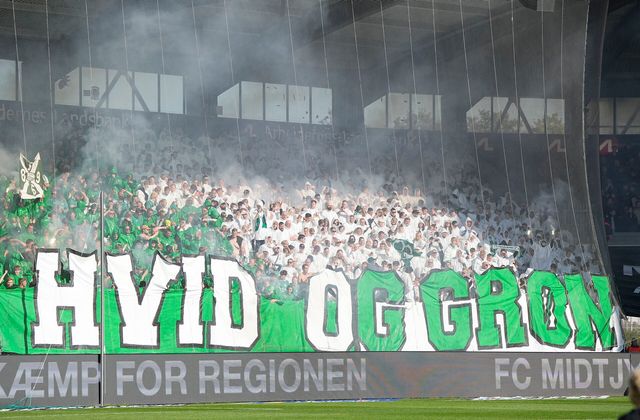 FC Midtjylland og Viborg duellerer, og begge fangrupperinger bidrager til god stemning til en flot kulisse.